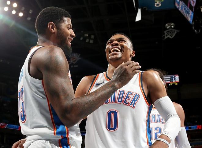 威少是不折不扣的全能代言人,职业生涯一共4个赛季做到场均三双,有5个赛季达成场均20+10的成就。
